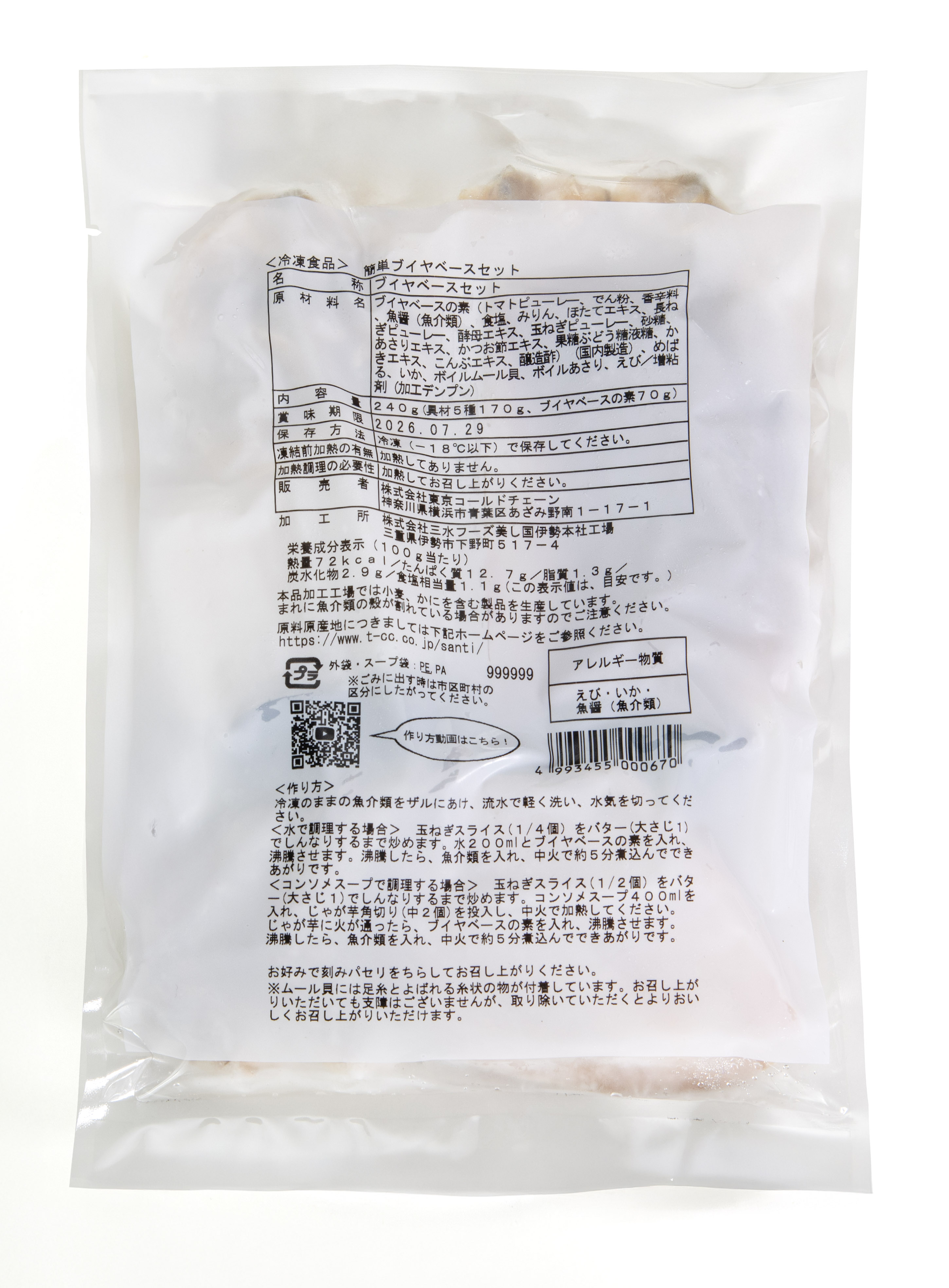 | ・内容量 | 240g(具材5種170g、ブイヤベースの素70g) |